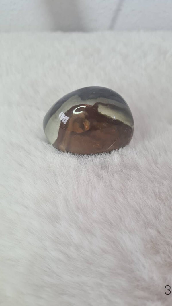Deze kleine polychroom jaspis handstenen wegen tussen de 90 en 95 gram en zijn zo'n 5,5/6,5 cm lang.